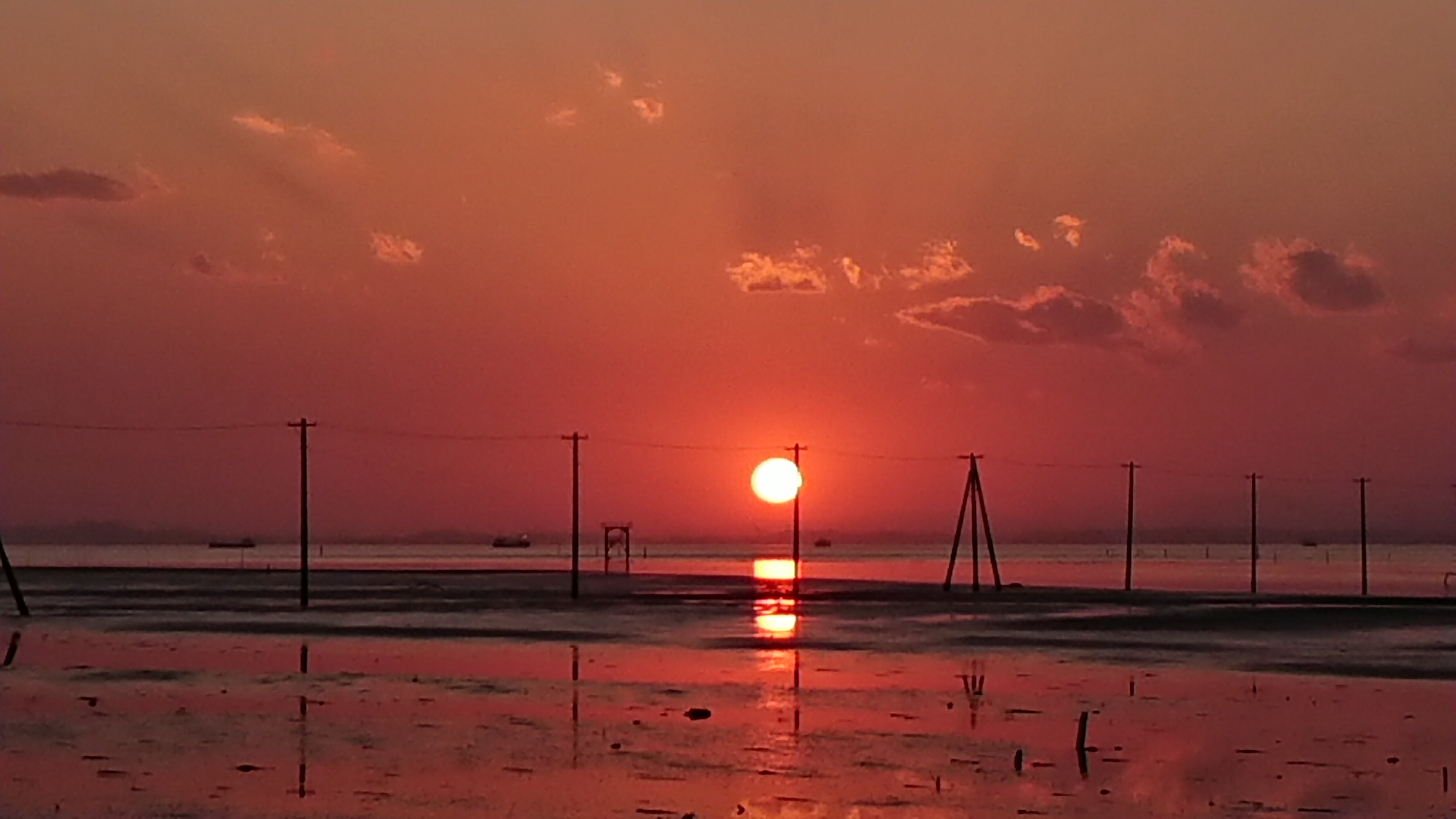 木更津アウトレット・COSTCOの帰り道に金田海岸から5分位で江川海岸に『日本のウユニ塩湖』夕暮れ時が一番きれいで海中電柱が黒くそびえ、寒い時期には富士山も夕暮れに染まります。 オススメです!